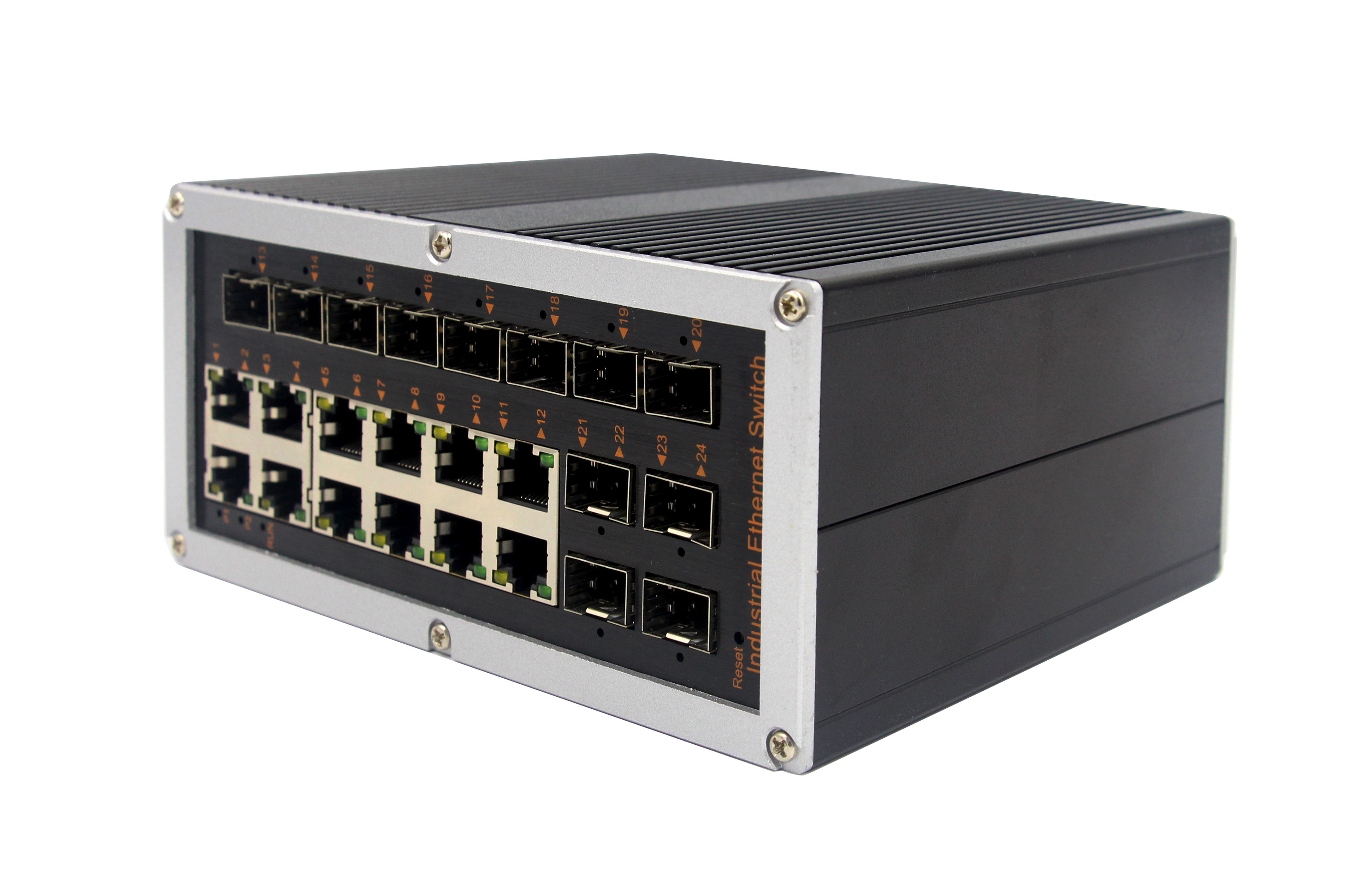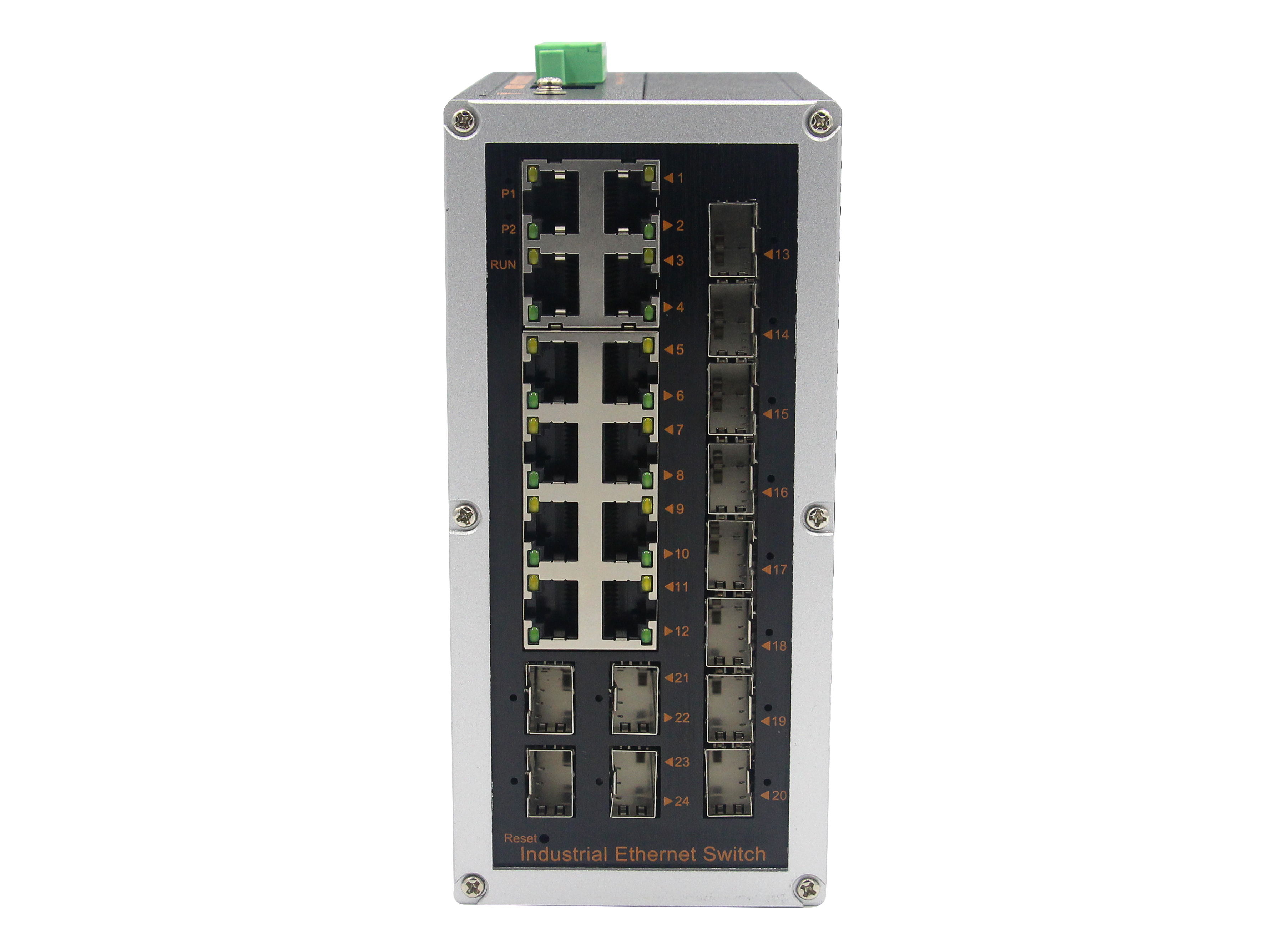 網管型千兆12光12電YH61212BGS-SFP工業以太網交換機,產品符合FCC、CE、ROHS標準。支持4個千兆光口和20個千兆電口,支持一路console口;支持工業現場所需的以太網二層協議,保證通信網絡的穩定性;該系列交換機采用低功耗、無風扇設計,確保無噪聲干擾,同時支持-40~85℃工作溫度和良好的EMC電磁兼容性能,保證在惡劣的工業環境中保持穩定的工作,為工廠自動化,智能交通,視頻監控等工業應用領域組建快速穩定的網絡終端接入網絡提供安全可靠的解決方案。護等級的外殼及 LED 指示燈,使之成為一個即插即用的工業級設備,為用戶的以太網設備聯網提供可靠、便捷的解決方案。