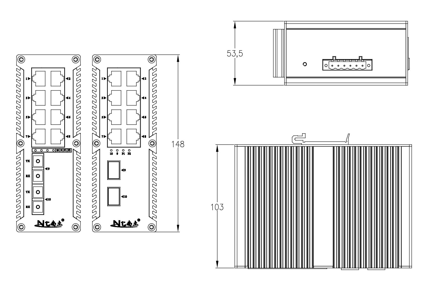 工業級(NT品牌)千兆非網管2光8電-SC接口單模雙纖20KM-導軌式-DC12~52V供電-寬溫(-40℃-85℃)默認不含AC電源適配器。 |