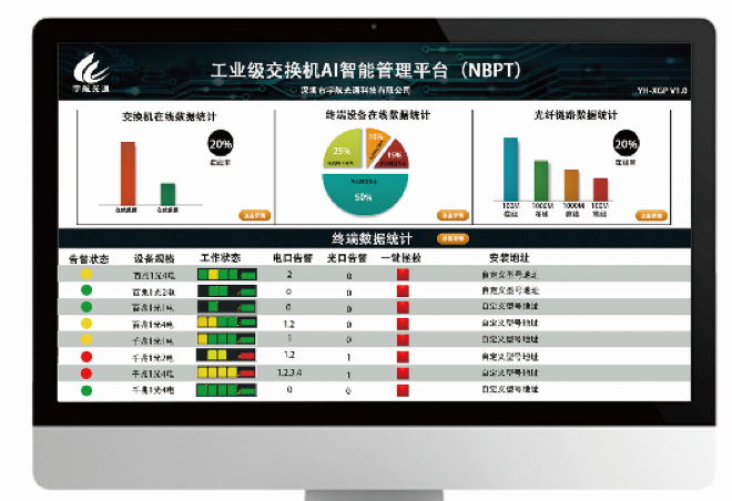 茅草屋的預(yù)算蓋出豪華別墅的效果,真正的低成本的前提下,實(shí)現(xiàn)安防傳輸?shù)目煽啃裕梢暬煽匦裕⑦m用于局域網(wǎng)技術(shù)為主的監(jiān)控場景,NBPT AI智能管理平臺有別于傳統(tǒng)SNMP,可實(shí)現(xiàn)前端一層管理工業(yè)交換機(jī)的狀態(tài)可視化,端口可視化,終端可視化,光纖鏈路可視化,流量寬帶可視化。
