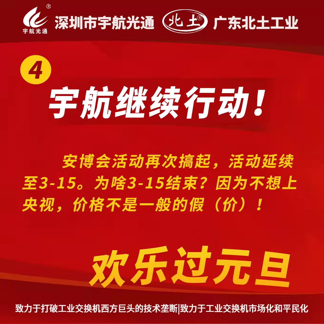 由于疫情影響,很多朋友沒有來到本屆CPSE安博會現場,沒能親眼目睹本次展會;也有很多朋友擔心此次展會會不會像這個冬天一樣稍顯冷峻——作為本屆CPSE安博會的氣氛組,宇航不僅在展會上紅紅火火、熱熱鬧鬧地,也要將這份熱情帶到沒有來參展的朋友們的心中。雖然CPSE安博會結束了,但是應廣大客戶朋友們的強烈要求,宇航繼續感恩客戶,普惠市場,98/258的活動延續至2022-3-15。元旦已至,2022已經開始新的篇章,感恩工業通信時代,感恩宇航客戶們的擁戴,2022我們一起加油!