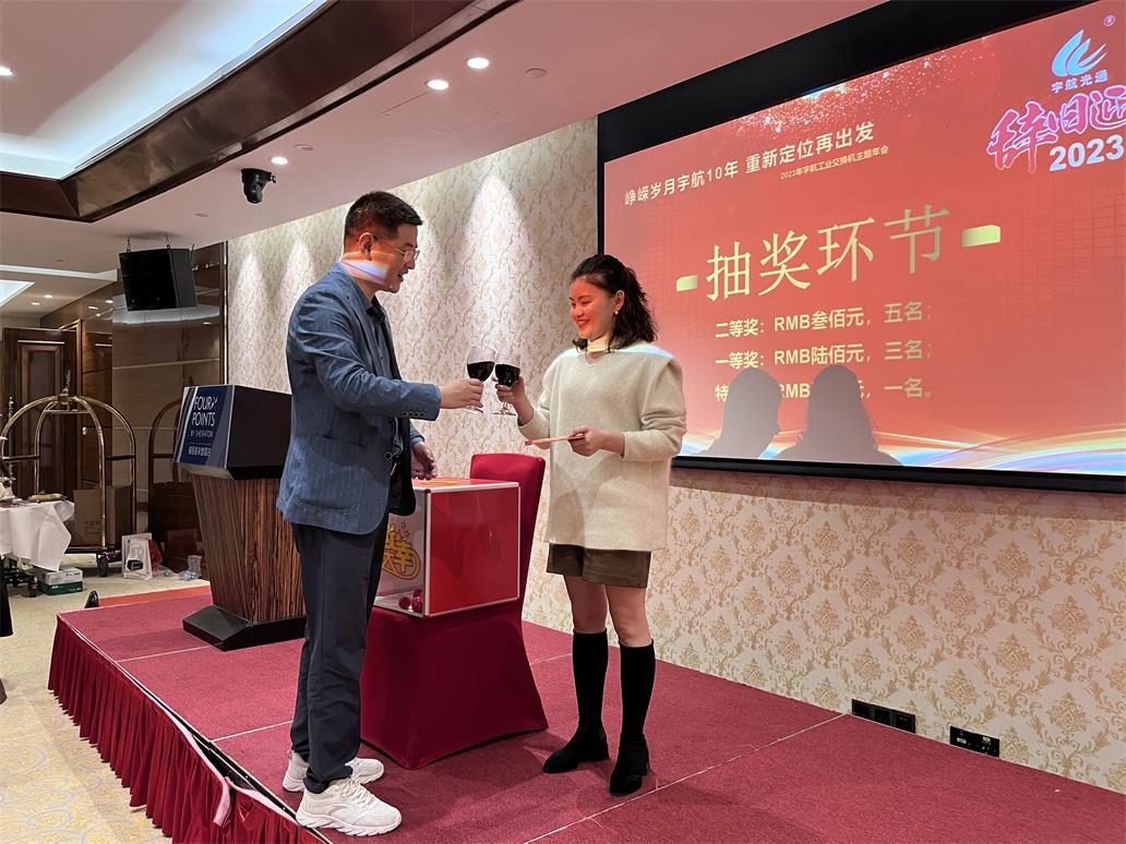 7日17:00整,2023宇航工業交換機主題年會正式開始,時長四個小時,整個過程有夢想,有感動,有感恩,有頒獎,有游戲,有抽獎,整個現場熱火朝天,掌聲雷動。