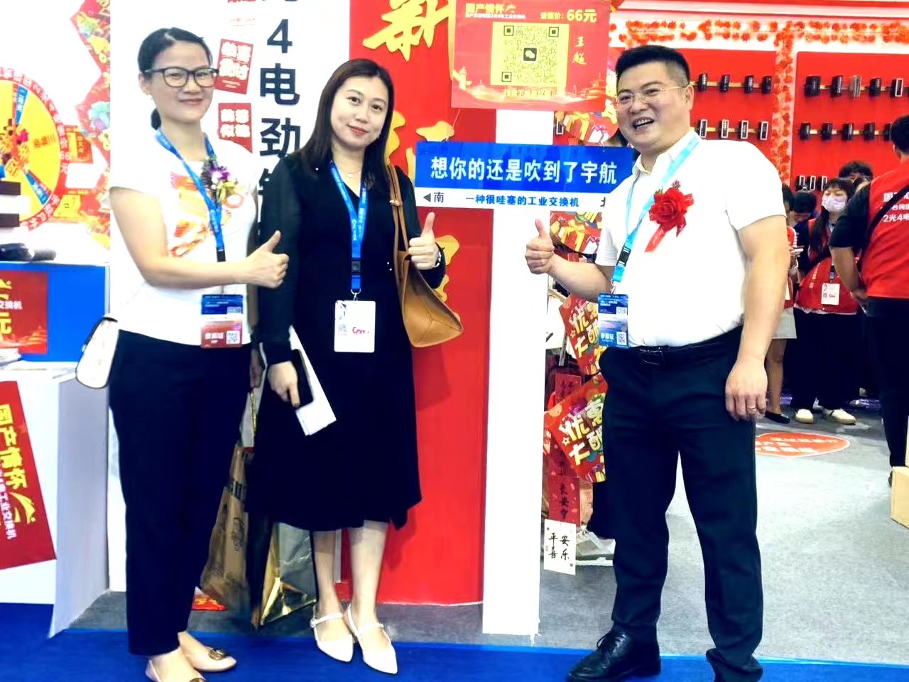 宇航工業交換機劉總受邀參加CPSE安博會開幕式(第二排左二) 宇航是戶外工業銷量第一品牌,本次展會宇航順應潮流,以中國紅為背景,結合當前“00后”慣用的網絡流行語來打造展館,兩種元素相互碰撞,獨具匠心,整個展館充滿活力和年輕氣息,吸引了眾多嘉賓駐足觀看,前來打卡留念的觀眾絡繹不絕。
