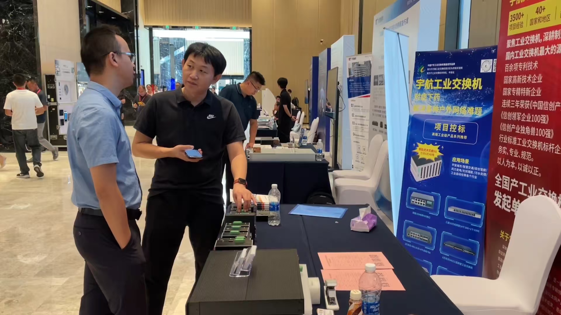 在展臺上,宇航工業交換機代表們詳細介紹了每款產品的技術亮點和實際應用效果,大家圍繞著展示臺展開了熱烈的討論,爭相了解新產品如何能夠提高他們現有系統的效率和可靠性,很多合作伙伴在輕松的氛圍中進行深入的對話,大家互相交換名片、討論合作機會,并表達了對宇航工業交換機產品的濃厚興趣,同時也對宇航新產品和新解決方案寄予了厚望,期待能夠在未來的項目中發揮重要作用。