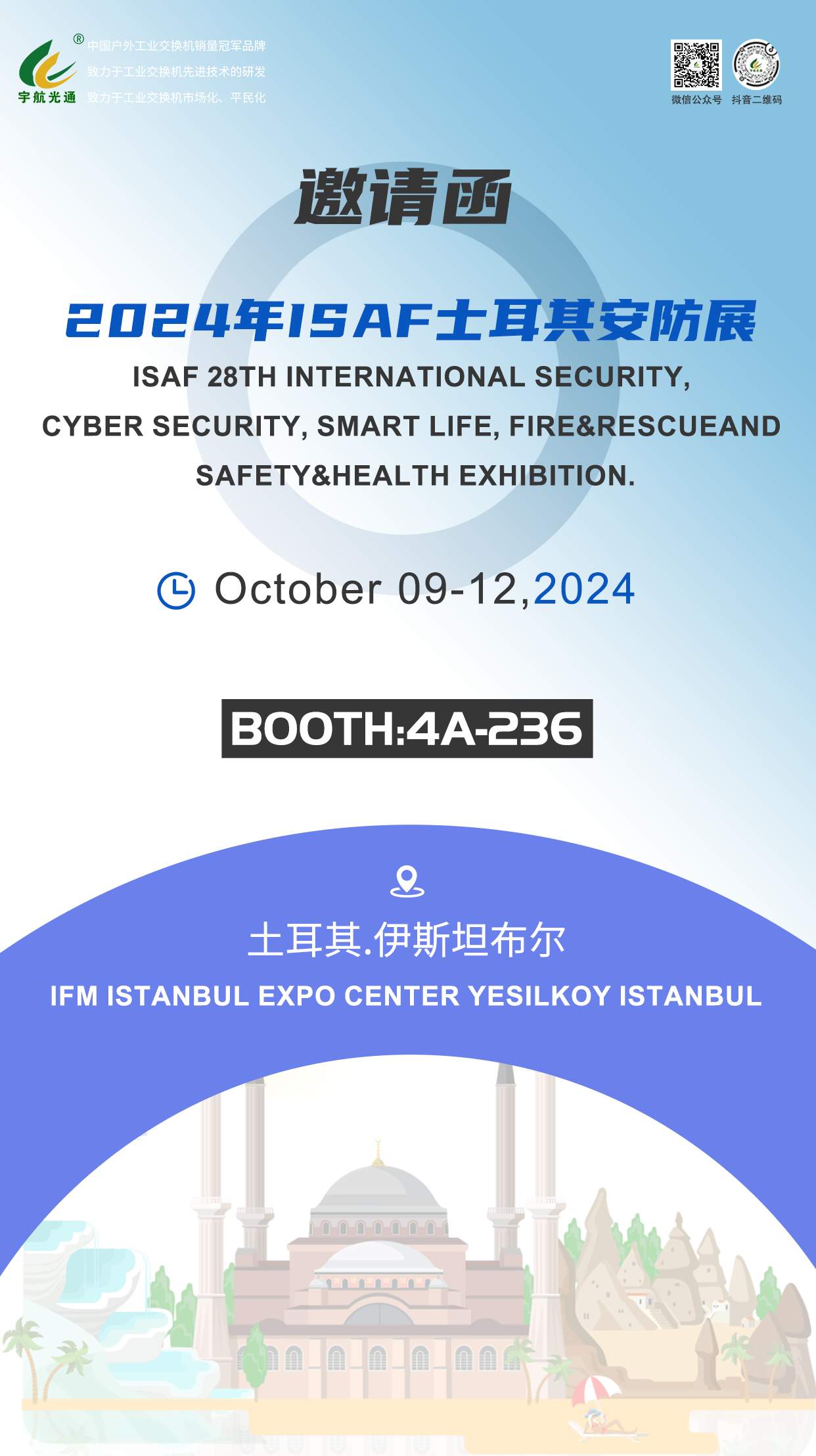 十月,宇航工業(yè)交換機(jī)將接著在土耳其.伊斯坦布爾、中國(guó)北京參展,屆時(shí),歡迎各位領(lǐng)導(dǎo)嘉賓蒞臨現(xiàn)場(chǎng),參觀指導(dǎo)!