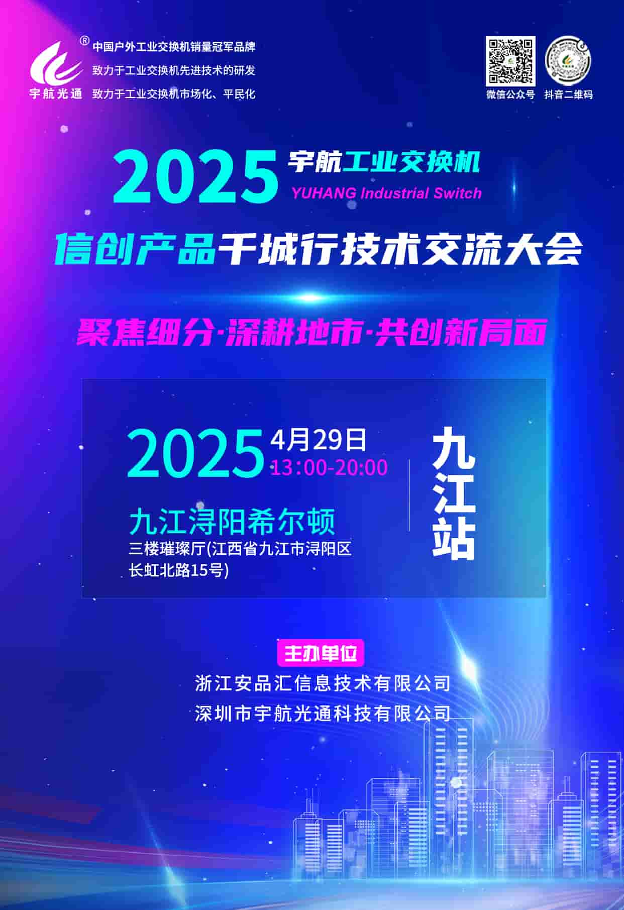 2025年4月23日至4月25日,中國戶外工業(yè)交換機銷量冠軍品牌——宇航工業(yè)交換機再度展現(xiàn)強勁市場布局,密集亮相全國六大行業(yè)盛會:第十五屆中國國際道路交通安全產(chǎn)品博覽會(武漢)、成都國際工業(yè)博覽會、東北安博會,以及江西宜春、撫州和陜西西安的2025信創(chuàng)產(chǎn)品千城行技術交流大會。