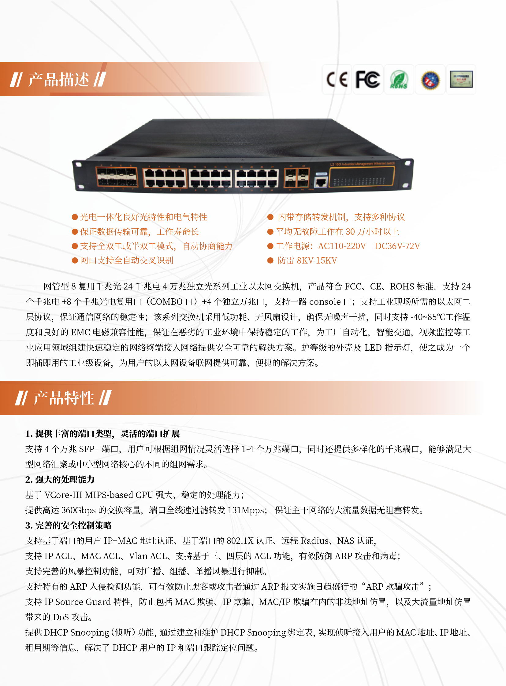 管理型千兆8光電復(fù)用16千兆電4萬兆獨立光
