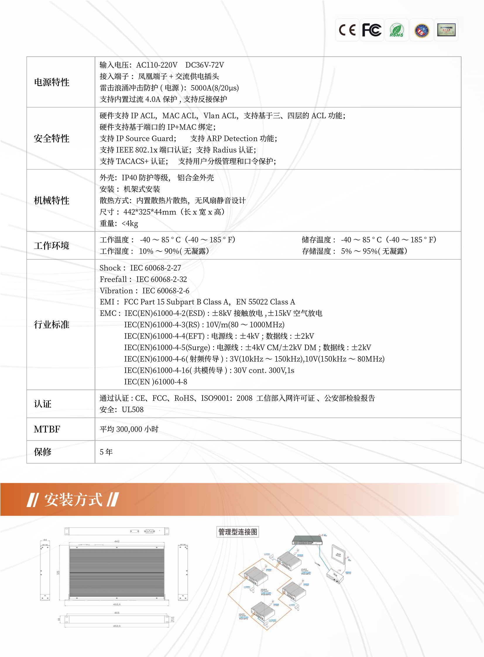 電信級雙電源冗余保護(hù)、三級防雷設(shè)計,符合國際IEC61000-4-5標(biāo)準(zhǔn);符合安規(guī)EN60950、IEC60950標(biāo)準(zhǔn),適應(yīng)各種復(fù)雜安裝環(huán)境及惡劣天氣。