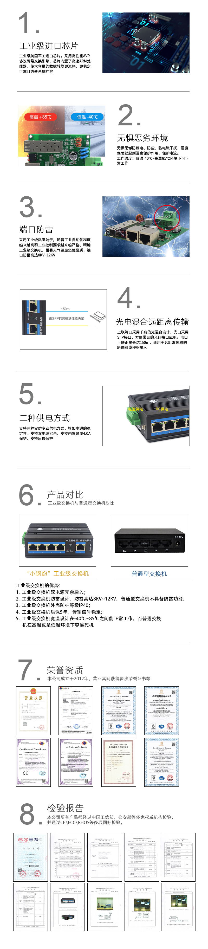 1個百兆光+4個百兆電、SC接口、多模雙纖、2公里、導軌式、DC12-52V供電-寬溫(-40℃-85℃)-CE-RoHS-FCC-公安部檢驗報告-工信部入網(wǎng)許可證 |