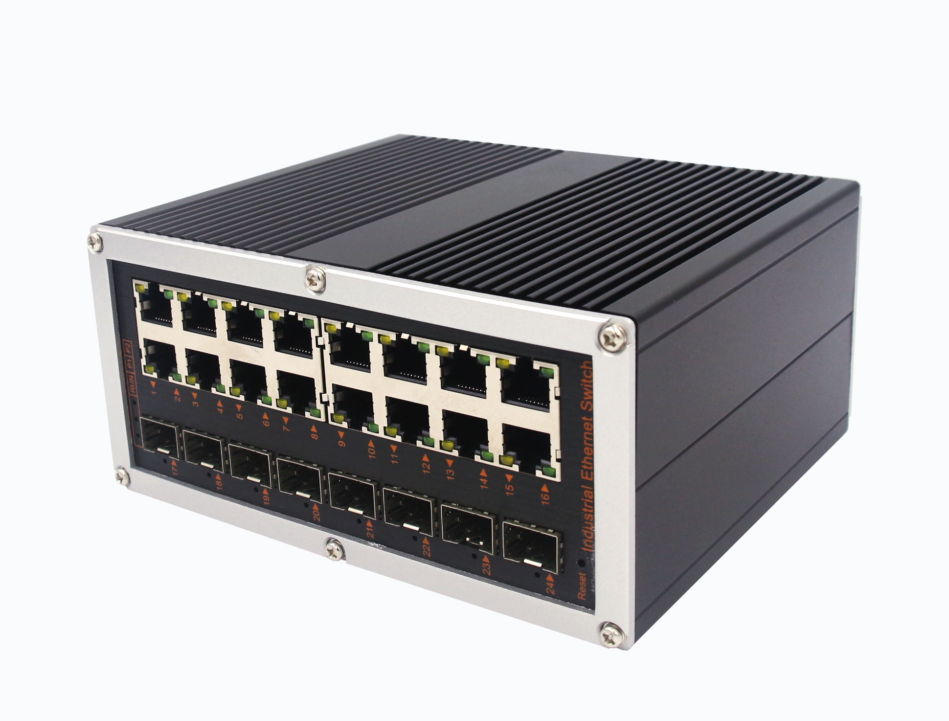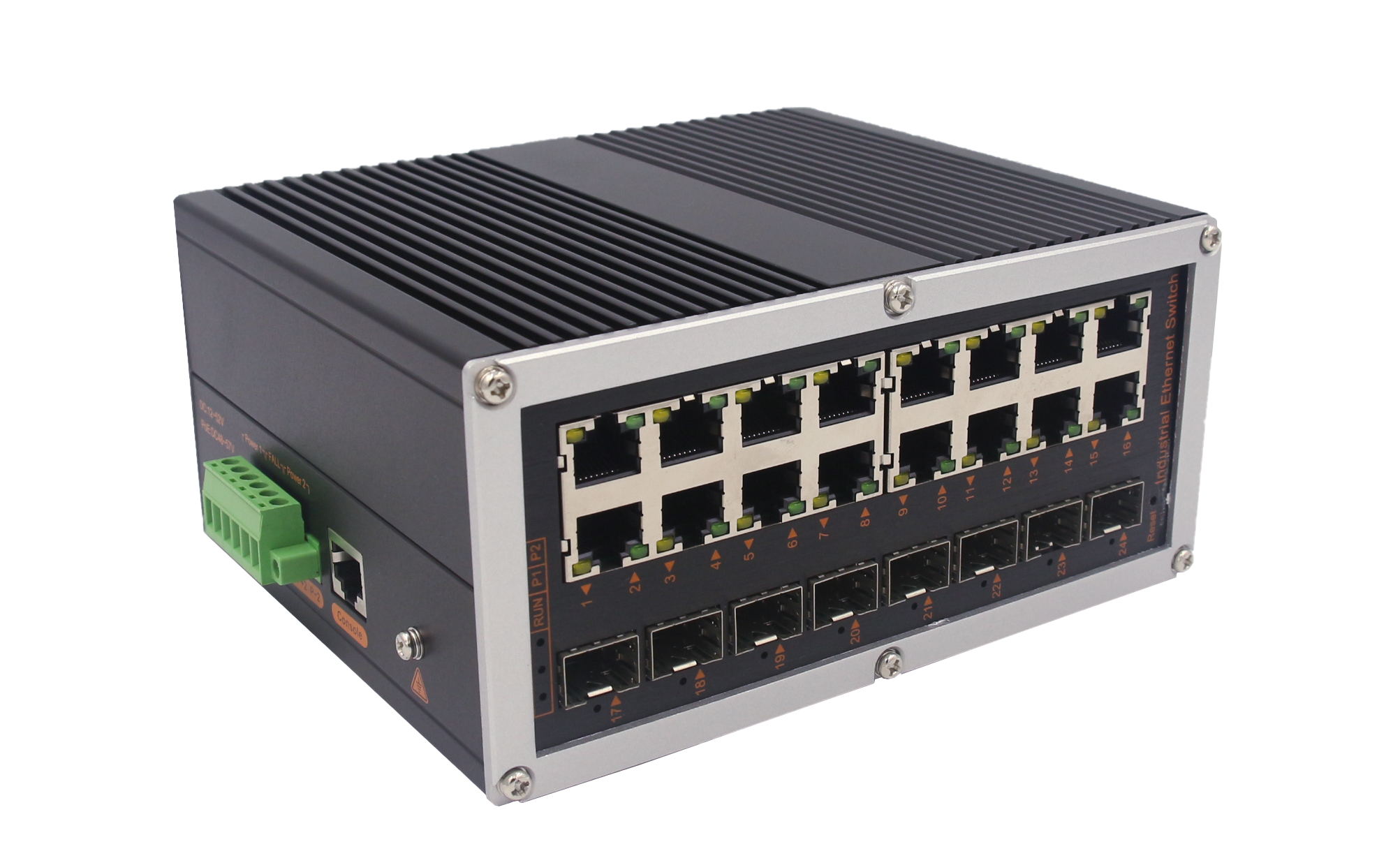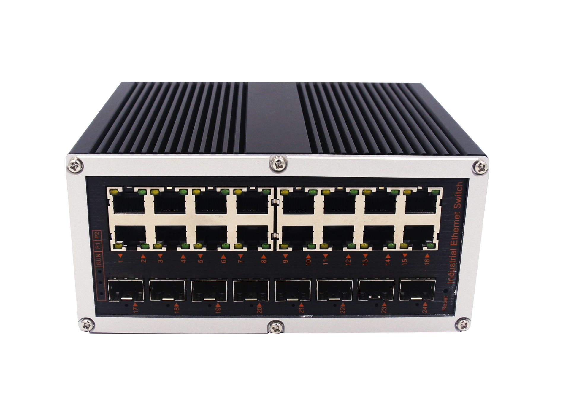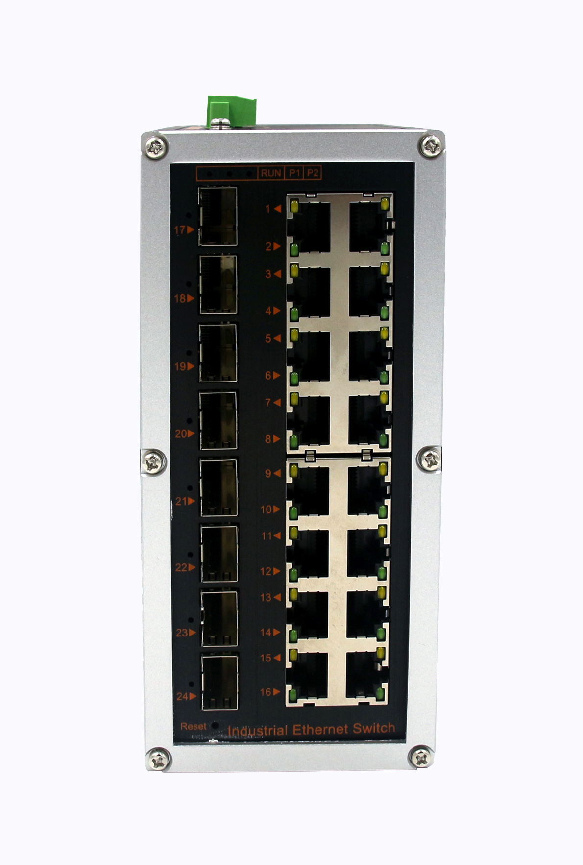 網管型千兆8光16電工業以太網交換機,產品符合FCC、CE、ROHS標準。支持8個千兆光口和16個千兆電口,支持一路console口;支持工業現場所需的以太網二層協議,保證通信網絡的穩定性;該系列交換機采用低功耗、無風扇設計,確保無噪聲干擾,同時支持-40~80℃工作溫度和良好的EMC電磁兼容性能,保證在惡劣的工業環境中保持穩定的工作,為工廠自動化,智能交通,視頻監控等工業應用領域組建快速穩定的網絡終端接入網絡提供安全可靠的解決方案。護等級的外殼及 LED 指示燈,使之成為一個即插即用的工業級設備,為用戶的以太網設備聯網提供可靠、便捷的解決方案。