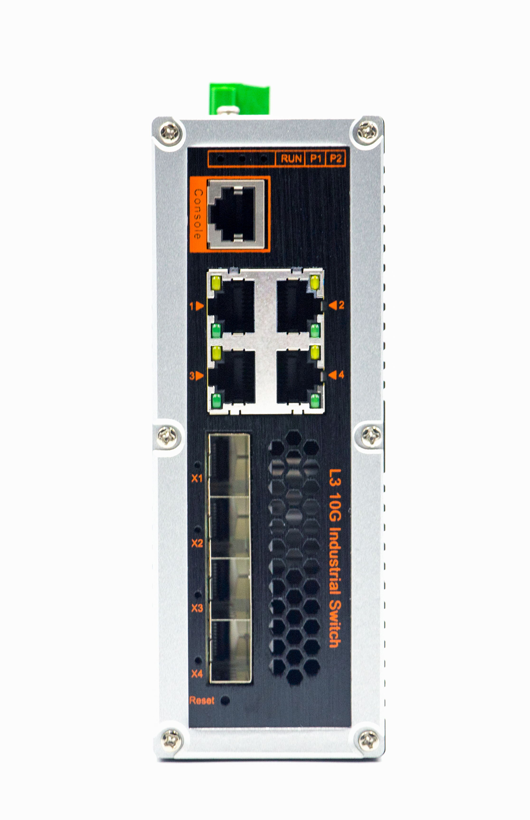 三層網(wǎng)管4萬兆光4千兆電SFP萬兆網(wǎng)管型導軌式工業(yè)匯聚交換機 |