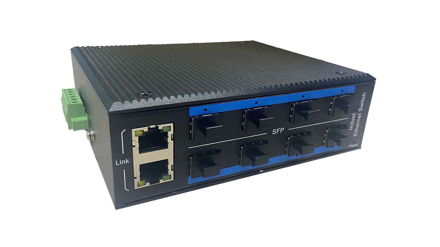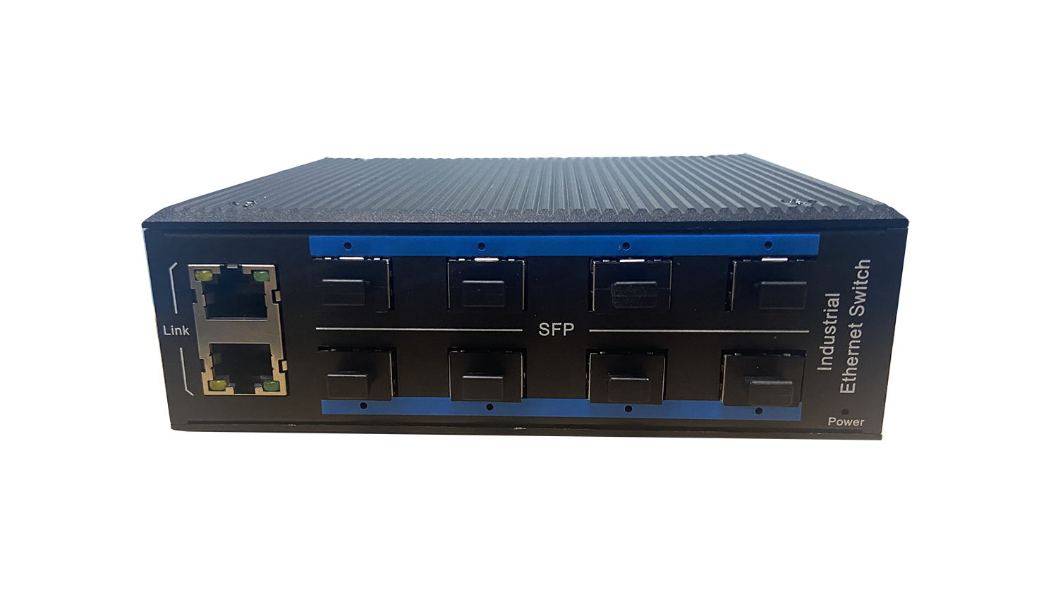 8個千兆光+2個千兆電、SFP接口(不含光模塊)、導軌式、DC12-52V供電-寬溫(-40℃-85℃) |