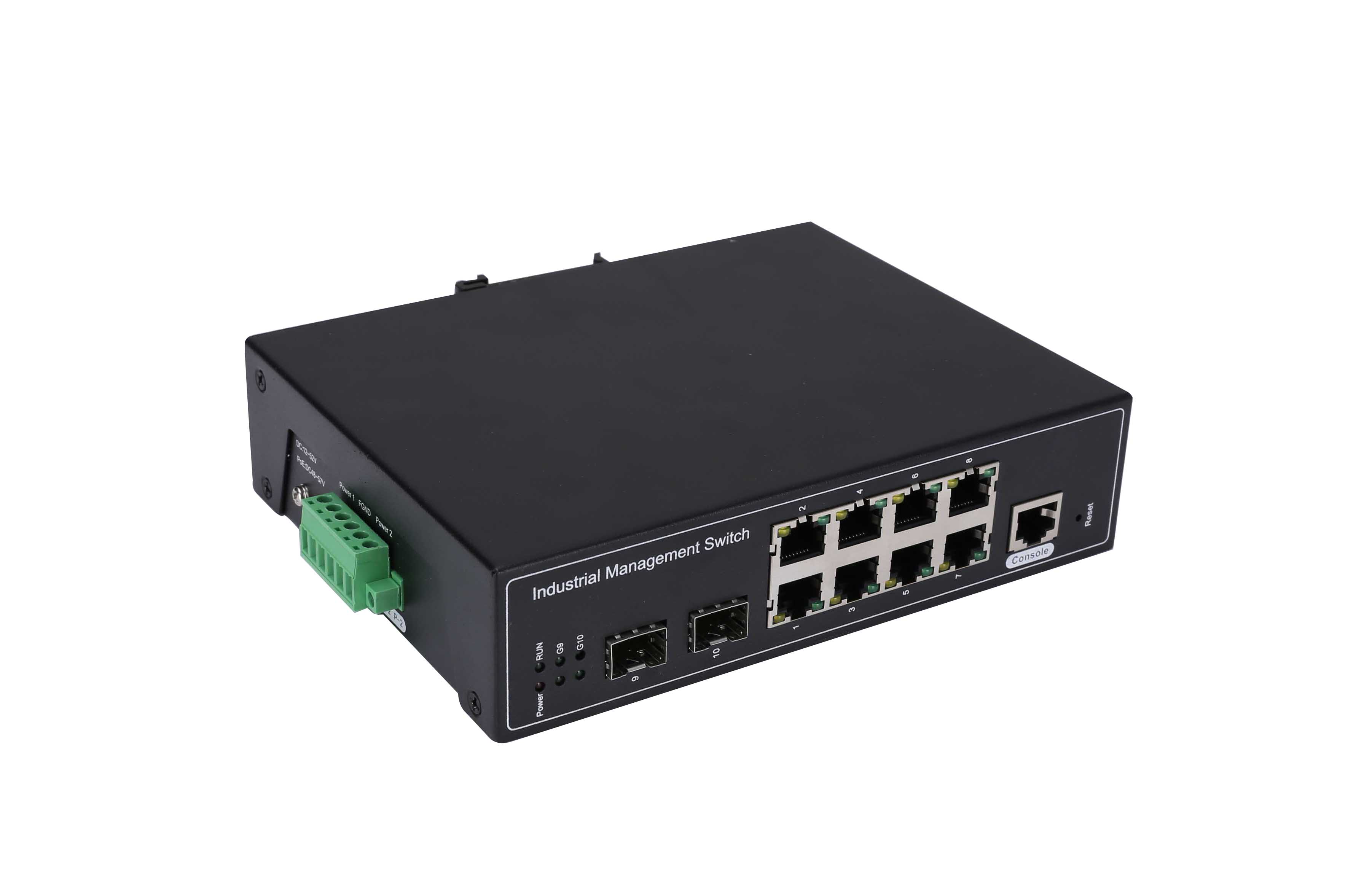 YH600L-28GFS-SFP是網(wǎng)管型工業(yè)以太網(wǎng)交換機,產品符合FCC、CE、ROHS標準。支持2個千兆光口和8個百兆電口,支持一路console口;支持工業(yè)現(xiàn)場所需的以太網(wǎng)二層協(xié)議,保證通信網(wǎng)絡的穩(wěn)定性;該系列交換機采用低功耗、無風扇設計,確保無噪聲干擾,同時支持-40~75℃工作溫度和良好的EMC電磁兼容性能,保證在惡劣的工業(yè)環(huán)境中保持穩(wěn)定的工作,為工廠自動化,智能交通,視頻監(jiān)控等工業(yè)應用領域組建快速穩(wěn)定的網(wǎng)絡終端接入網(wǎng)絡提供安全可靠的解決方案。