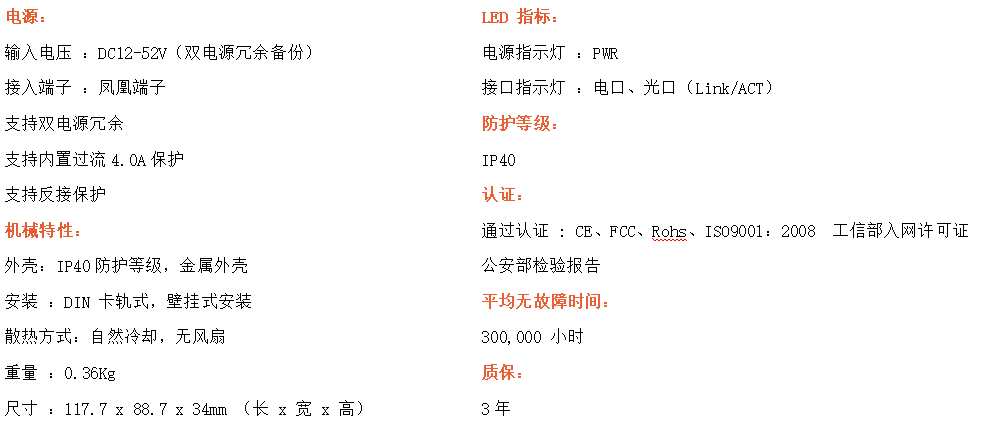 1路百兆電口+1路百兆FX光口工業級以太網交換機,支持1個10Base-T/100Base-TX電口和1個100Base-X(SC/ST/FC)光口。產品符合FCC、CE、ROHS標準。RDL11F系列交換機具有-40℃~75℃的工作溫度,具有超強的堅固度能適應各種嚴苛環境,也可以非常方便的安置在空間緊湊的控制箱中。導軌的安裝特性、寬溫操作及擁有IP40防護等級的外殼及LED指示燈,使RDL11F成為一個即插即用的工業級設備,為用戶的以太網設備聯網提供可靠、便捷的解決方案。