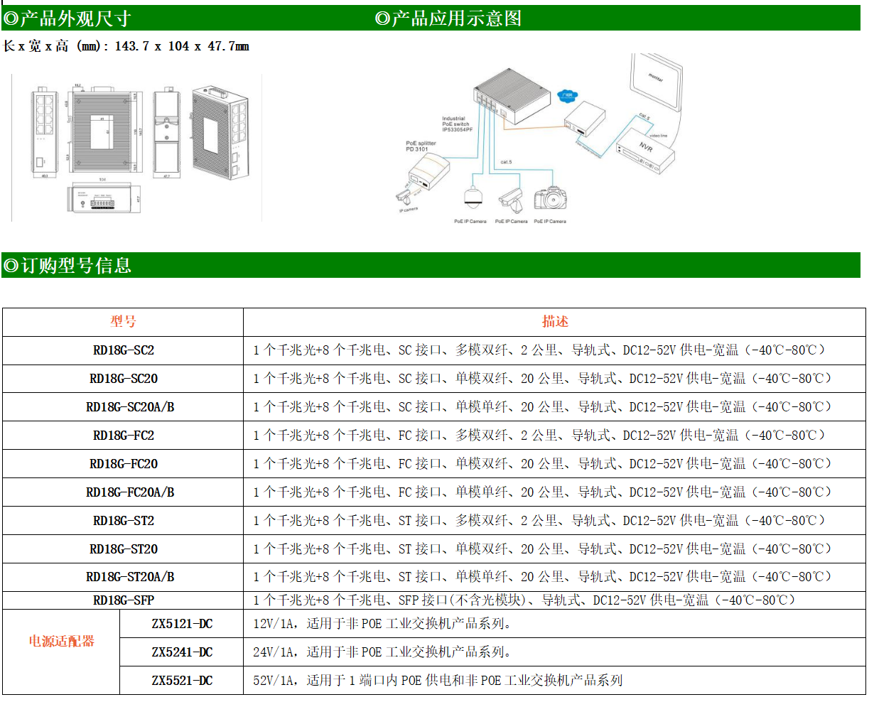 8路千兆電口+1路千兆FX光口工業級以太網交換機,支持8個100Base-T/1000Base-TX電口和1個1000Base-X光口。產品符合FCC、CE、ROHS標準。RD18G系列交換機具有-40℃~80℃的工作溫度,具有超強的堅固度能適應各種嚴苛環境,也可以非常方便的安置在空間緊湊的控制箱中。導軌的安裝特性、寬溫操作及擁有IP40防護等級的外殼及LED指示燈,使RD18G系列成為一個即插即用的工業級設備,為用戶的以太網設備聯網提供可靠、便捷的解決方案。
