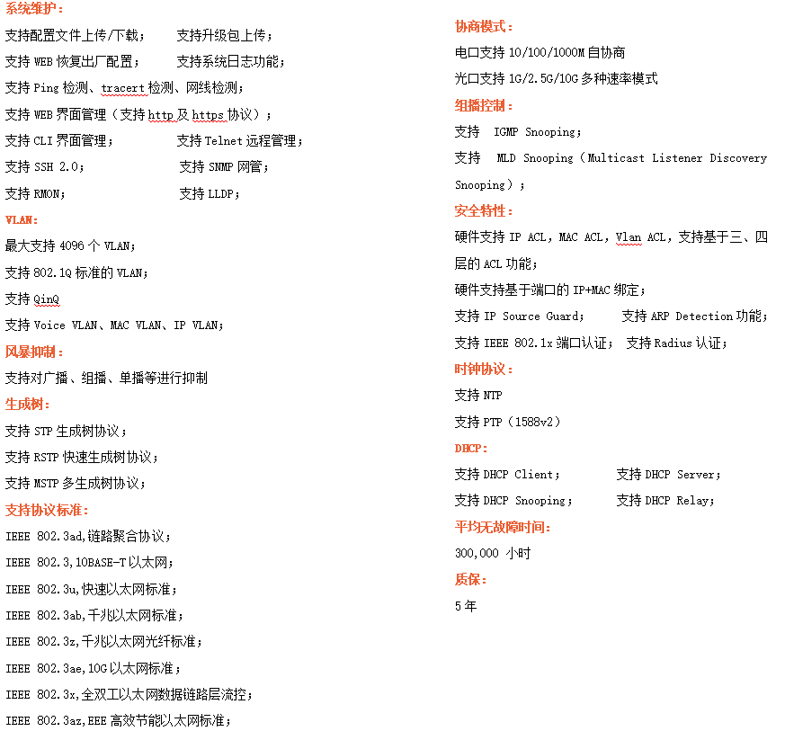 ●管理功能:支持WEB、CLI、SNMP等多種管理方式